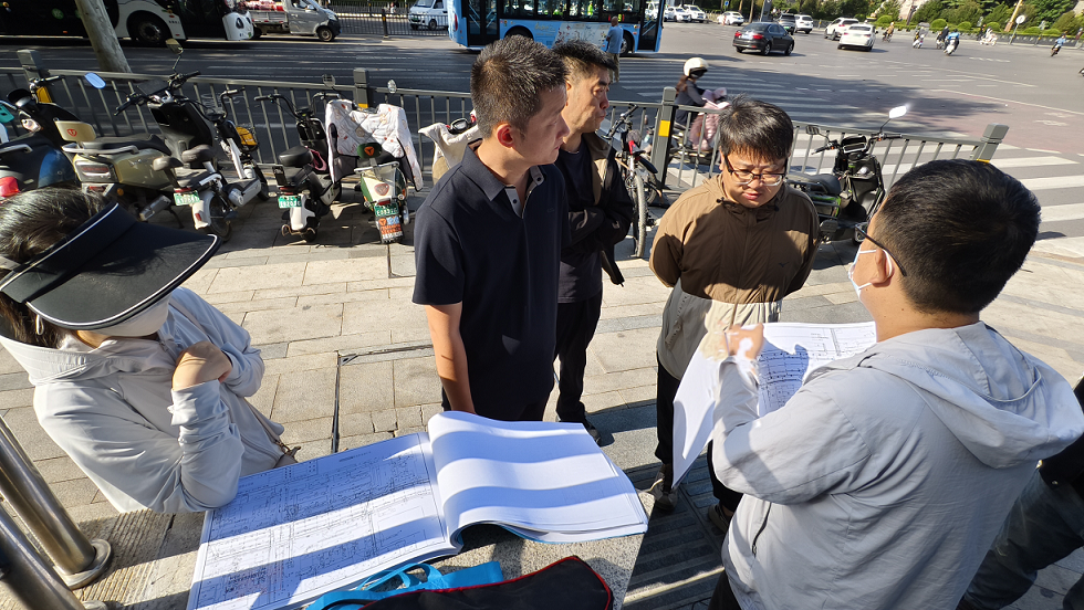为深入验证道路改造工程施工质量及材料规格符合性,9月9日,临汾市审计局解放路(鼓楼北大街—兵站路)道路改造工程竣工决算审计组赴现场实地调查。审计组与被审单位相关人员沿解放路街道南北全程徒步核查,对照竣工图纸、工程签证等资料,运用专业测量工具,对道路、交通、排水、给水、照明、绿化、电力等各分项工程的实体工程量进行随机抽测与核实。审计人员通过现场开启部分井盖,对管线埋深、材质类型、电缆配置等关键环节实施抽查,核验苗木数量及规格,并对过路管段的路面宽度进行实地测量。